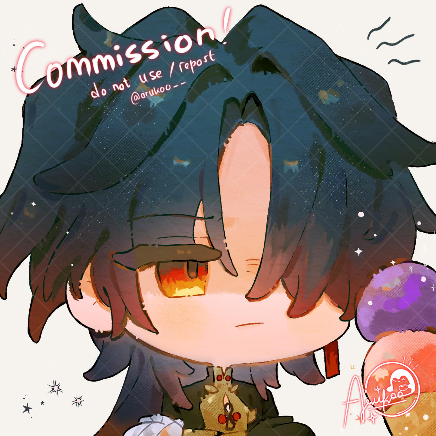 I may post the commission with watermark (please tell me if you prefer your commission results to be kept in private)